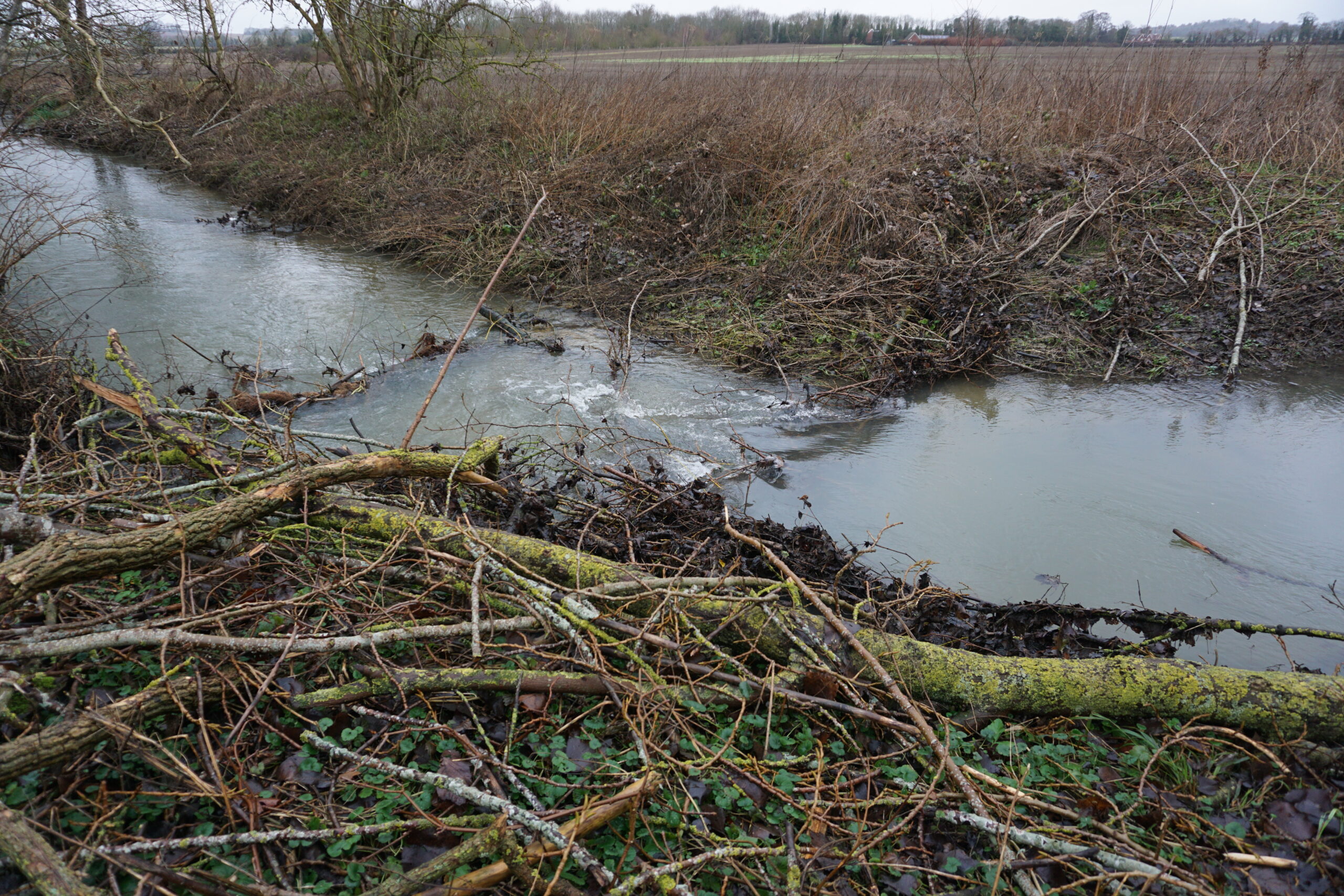 Recent rainfall easily demonstrates areas of floodplain that are suited to storing water on the land, allowing for reduced flood risk downstream and the gradual recharge of groundwater. Through floodplain restoration we will look to enhance these natural areas to be more effective and diverse, encouraging a mosaic of habitats. Poor water quality ditches will be diverted through these floodplain features to reduce sediment loading in channel, also allowing for stripping of nutrients from upstream farmland inputs. Removal of artificial features such as weirs and the renaturalisation of river margins through addition of woody debris and gravels will allow for the restoration of natural sediment transport processes, flushing through fine and suspended sediment and leaving the coarse gravels so key to chalk stream environments.